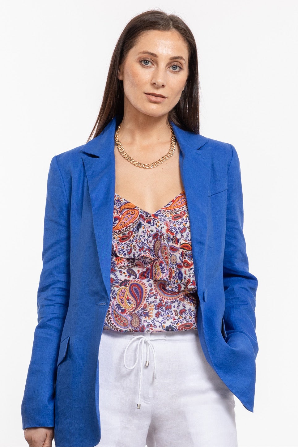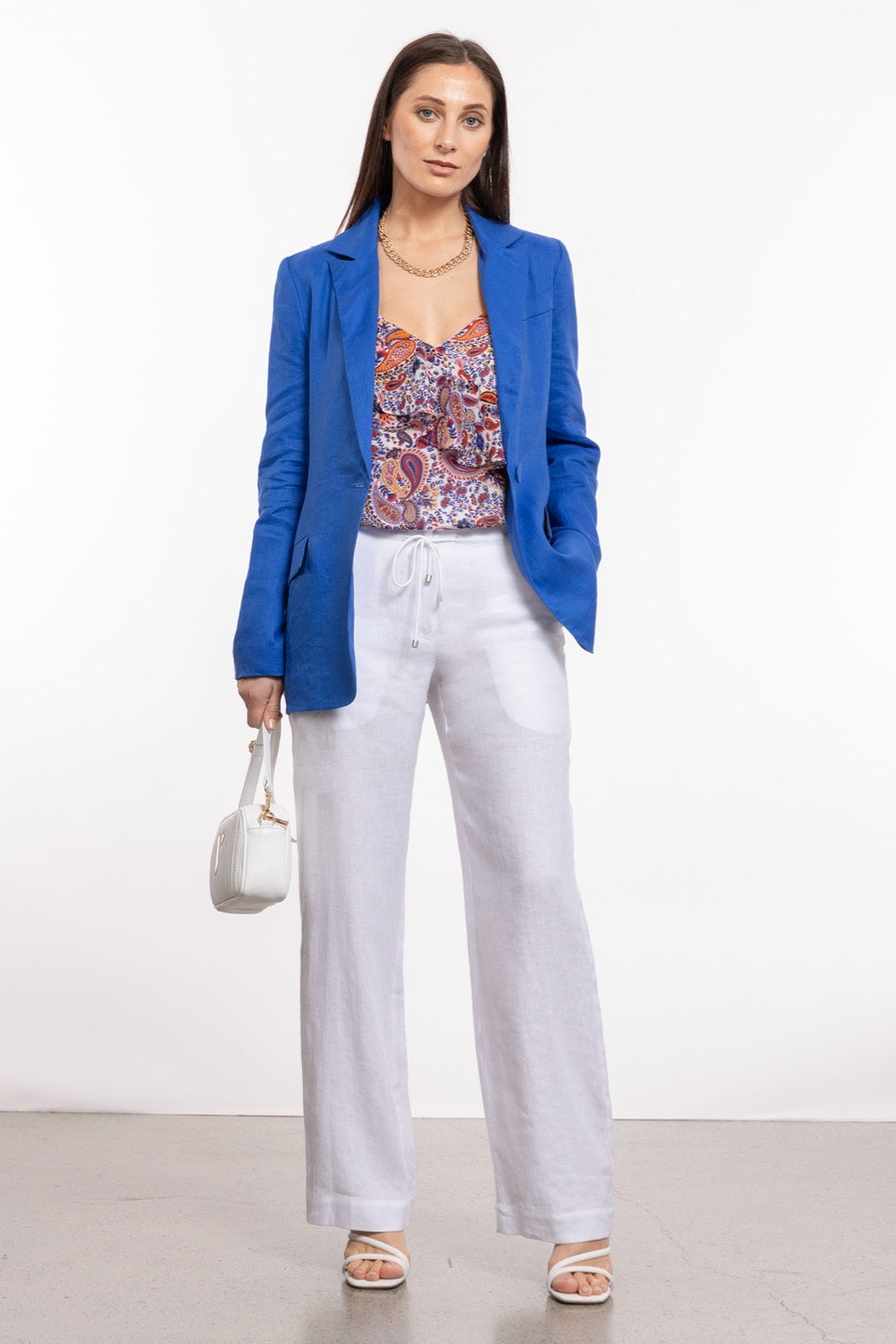 A floral printed camisole designed to steal your heart with an ultra-feminine ruffle front. This is the perfect camisole to wear under linen suits this season.