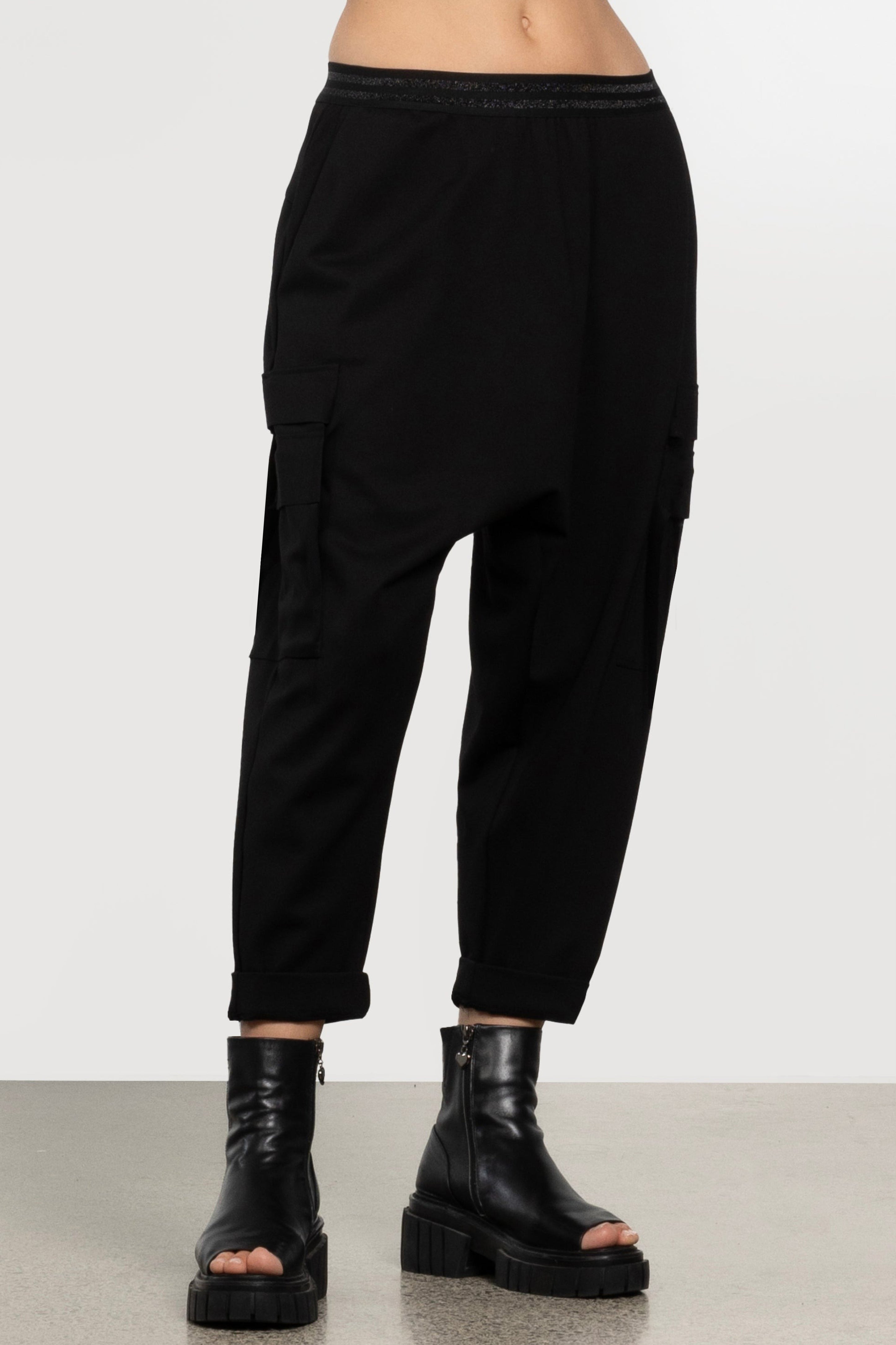 Experience ultimate comfort with the Haven Pant. Designed with a drop crotch and crafted from technical knit fabric, these 7/8 length pants feature pocket flaps, side pockets, and an elastic waistband for effortless pull-on wear.